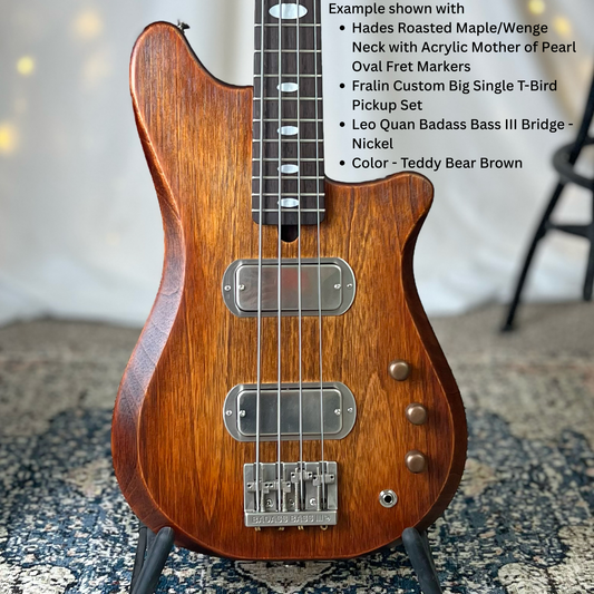Hope TB2 30-Inch Short-Scale Bass in Teddy Bear Brown with Fralin Custom Big Single TBird (passive) Pickup Set and V-V-T (Passive) Electronics